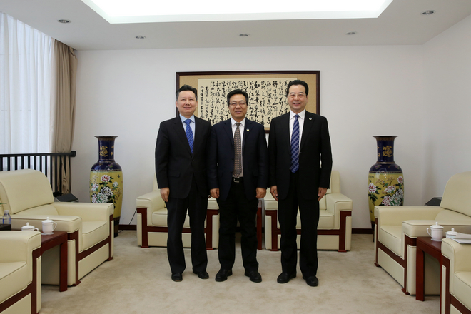 張曉松董事長(zhǎng)、周禮耀副總裁與中國(guó)鐵物馬正武董事長(zhǎng)合影留念